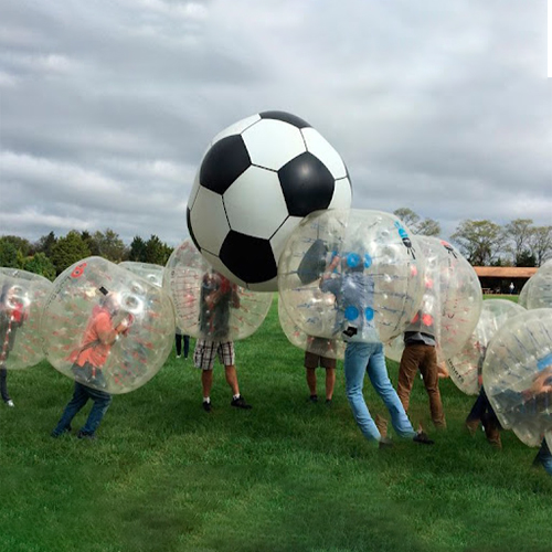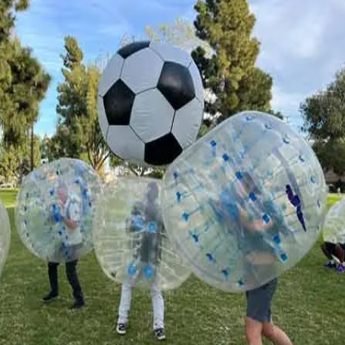 📦 توضیحات این پکیج شامل ۶ عدد توپ فوتبال حبابی و یک عدد توپ زمین و محیط سازی بازی میباشد